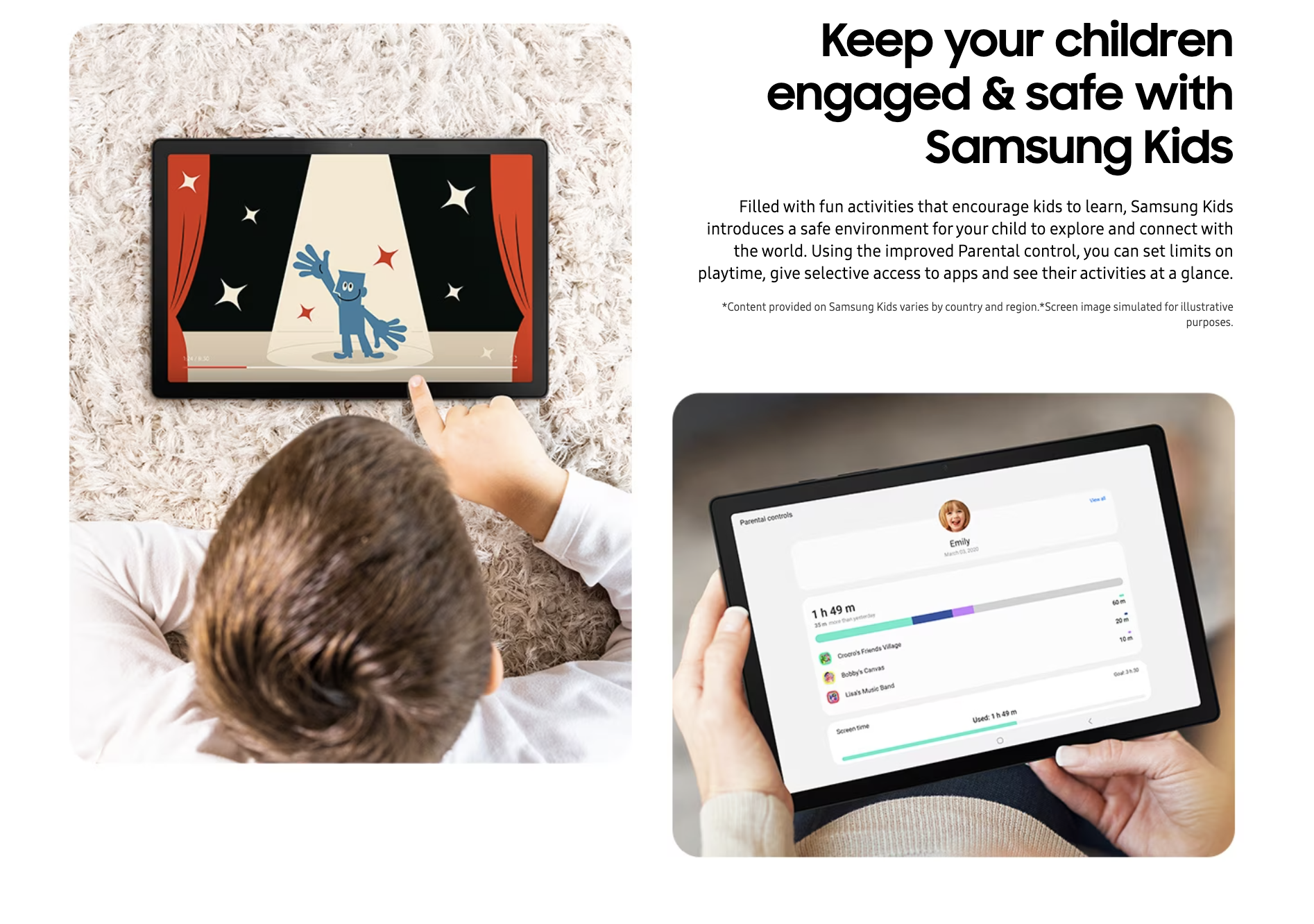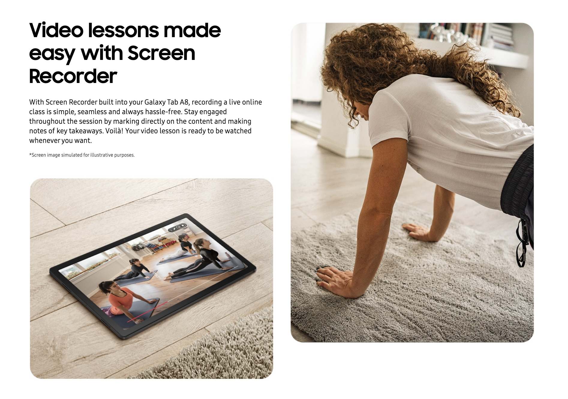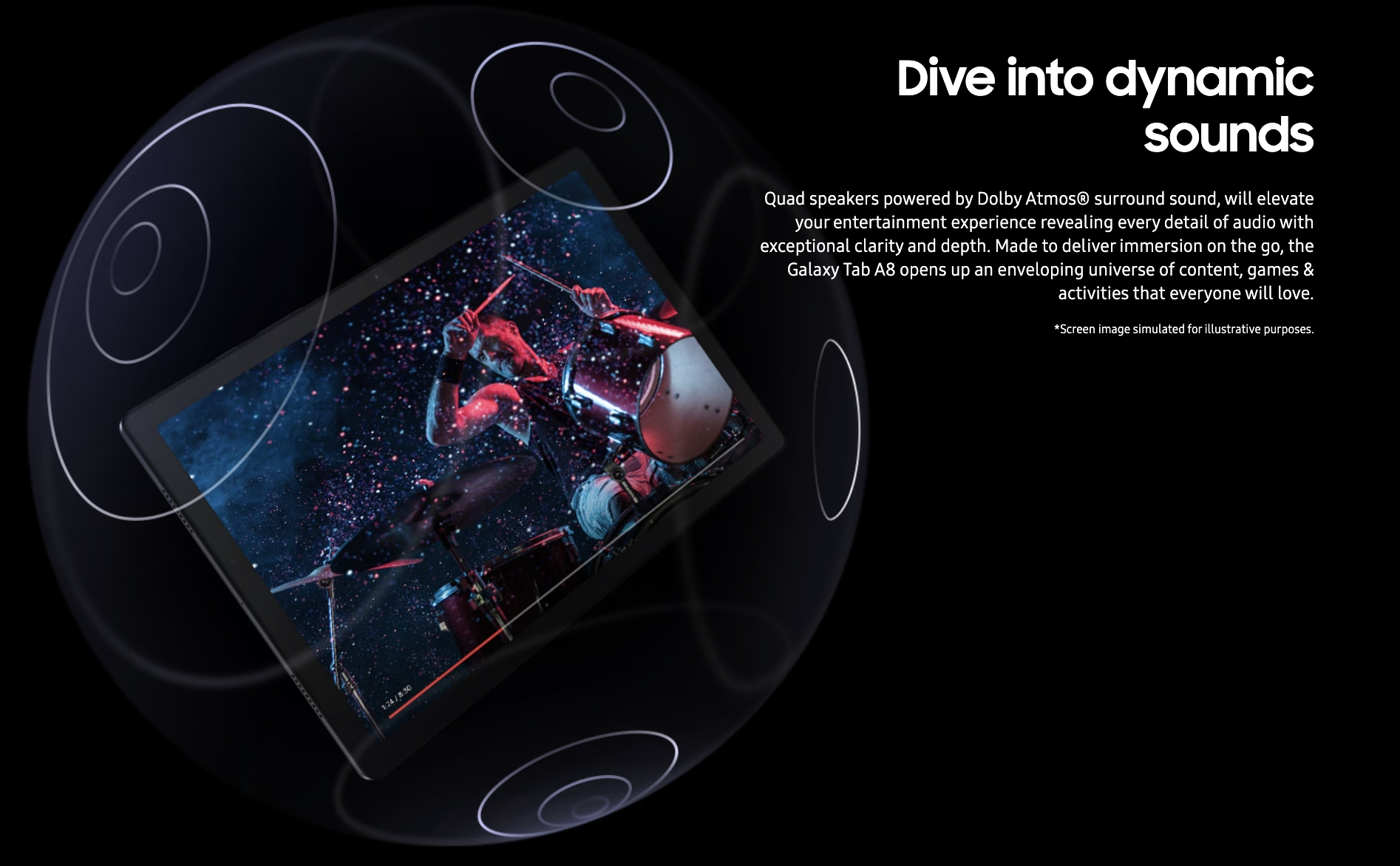 The 10.5” wide display, complete with symmetric bezel, measures only 10.2mm, so you can stay fully immersed in what’s on the screen. Explore epic films to how-to contents for a hobby you love, without compromise and enjoy a broader world through a bigger, better view with the Galaxy Tab A8.